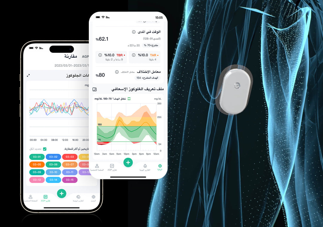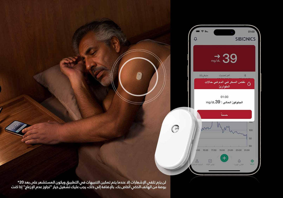 تنبيهات صوتية يحددها المستخدم لمستويات الجلوكوز المرتفعة/المنخفضة لحمايتك على مدار الساعة.